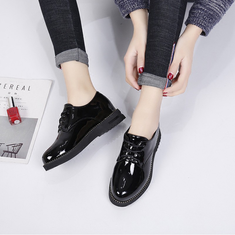 Increase Shoes Flat Bottom Leather Shoes Women S Patent Leather Lace Single Shoe