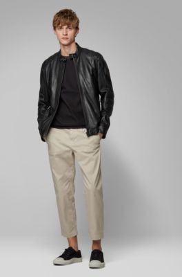 Slim Fit Biker Jacket In Leather With Quilted Details