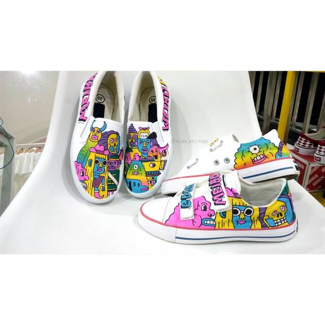 Size 33 Sepatu Lukis Painting Shoes Converse Anak Kids Perekat Velcro Slip On Doodle Art Lucu Shopee Indonesia