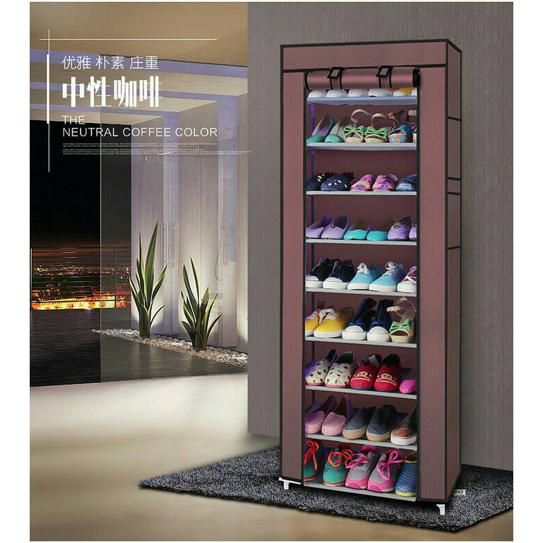 Murah Rak Sepatu 10th 10 Susun Shoes Rack With Cover Baju Buku Aksesoris Shopee Indonesia