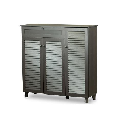 The louvres allow the content to breathe which can help with that worn shoe odor. 1 16 of over 2000 results for shoe storage cabinet with doors baxton studio wholesale interiors adalwin modern and contemporary 3 door dark brown wooden entryway shoes storage cabinet. Constructed of engineered wood the shoe cabinet is finished with dark.